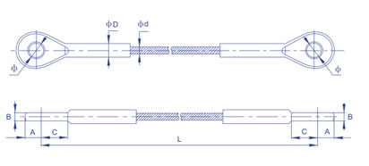| 產(chǎn)品型號(hào) | 鋼絲繩直徑d (mm) | A (mm) | B (mm) | C (mm) | D (mm) | 孔徑 Φ (mm) |